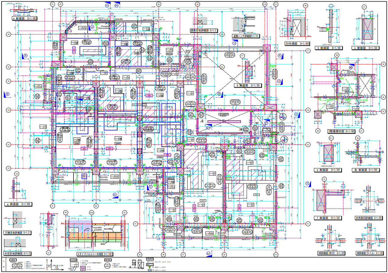 躯体図・床伏図・平面詳細図・断面詳細図・タイル、パネル割付図